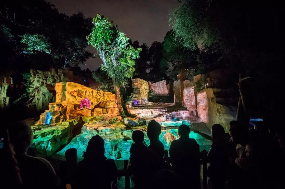 白天来动物园了解野生动物的日常,夜晚也别错过精彩的灯光秀。为了纪念新加坡动物园45周年,动物园与Moment Factory 合作举办了“幻光雨林之夜”灯光秀,十一个区域将用不同的影音互动,打造新奇美妙的视觉盛宴!