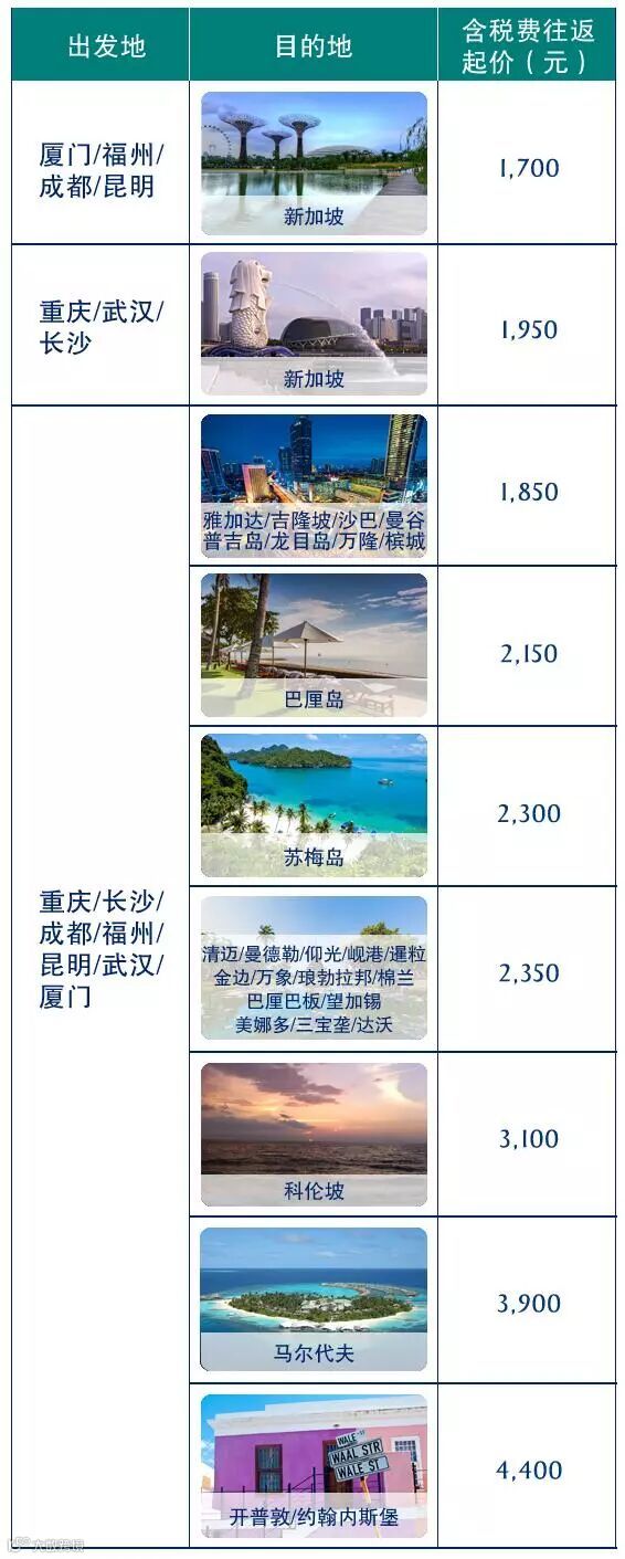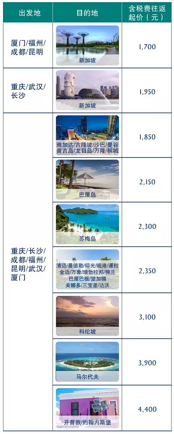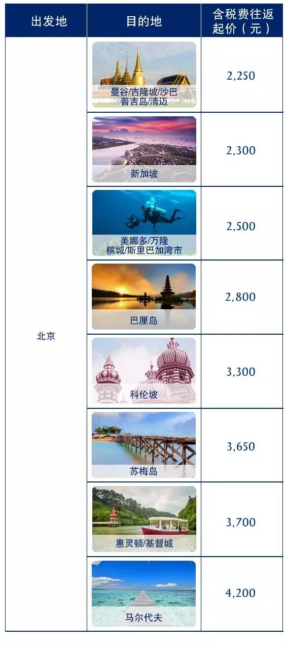 *以上价格为含税往返价格,税金以出票当天为准,价格略有微调。