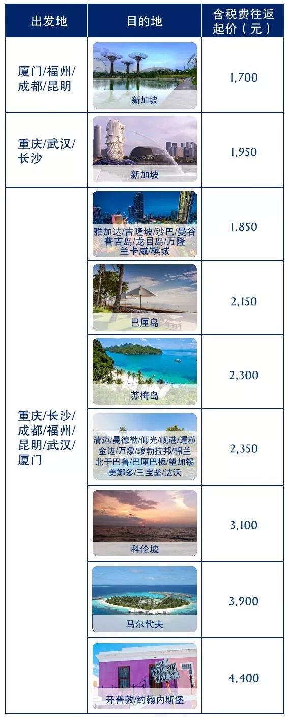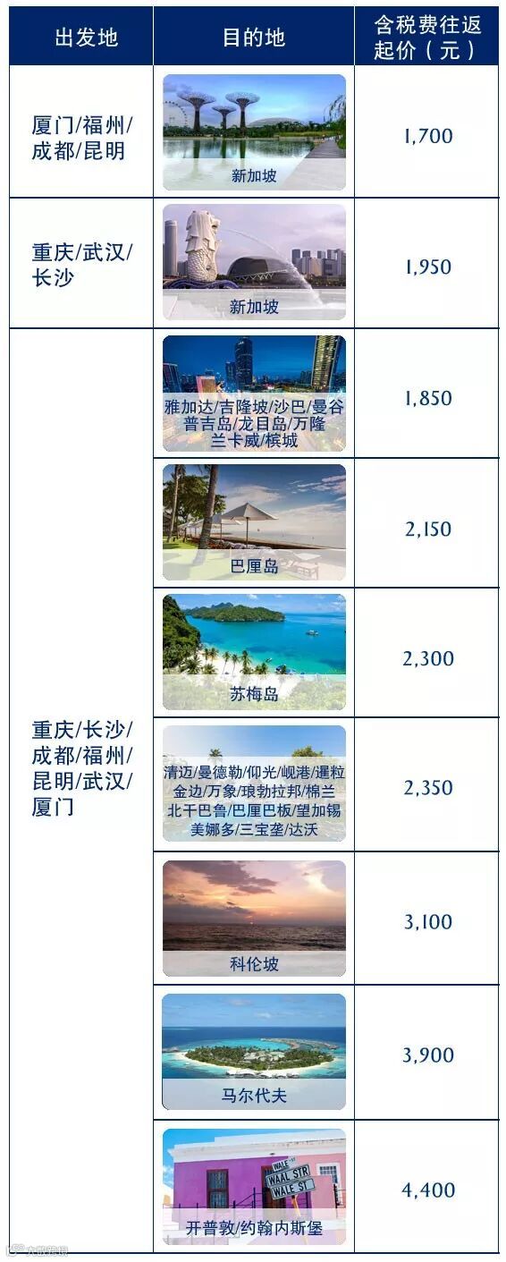 *以上价格为含税往返价格,税金以出票当天为准,价格略有微调。