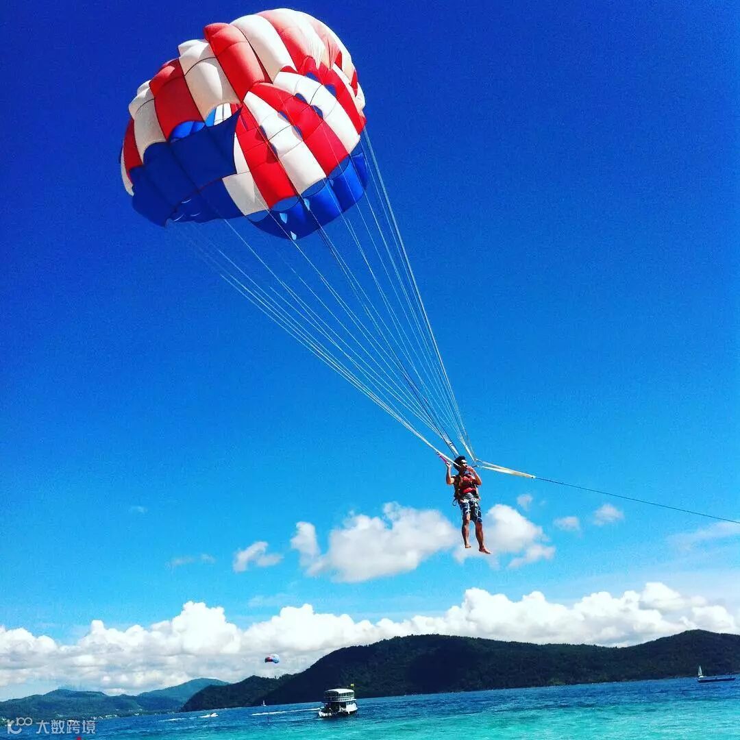 以摩托艇为动力,拉起一个个敢于挑战的游客在空中翱翔,体验一把空中飞人的感觉,顺便还可以将美丽海岸线一览无余。小提示:傍晚时分玩滑翔伞,换个角度欣赏海滩日落,那绝美的画面一定会让你念念不忘!