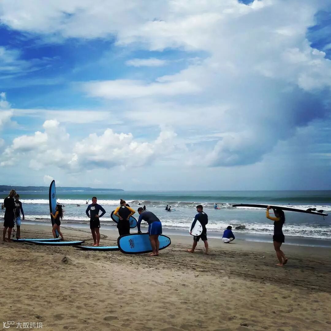巴厘岛不仅有着细腻的金色沙滩、清澈的海水,更拥有世界级的冲浪地点!库塔海滩被誉为巴厘岛上最美丽的海岸线,这里的海滩平坦、海沙洁白细腻,海浪涛涛、连绵不断,非常适合滑浪、冲浪。