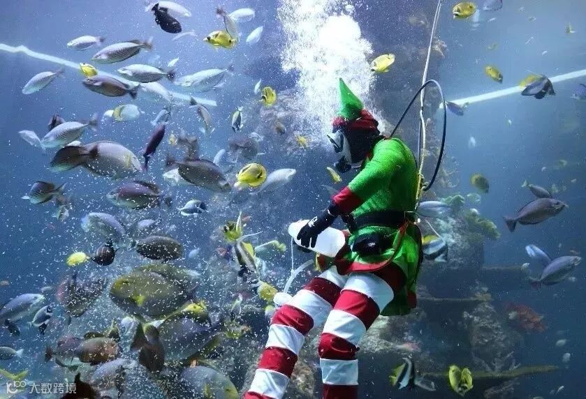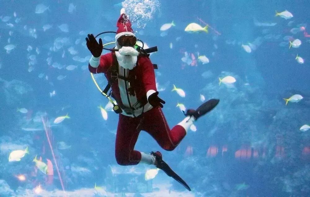圣诞期间在S.E.A海洋馆,你可能会遇到一场海底圣诞Party,圣诞老人和小精灵们潜入海底,和100000多条海洋生物一起在水下畅游,为鱼儿派送圣诞礼物。