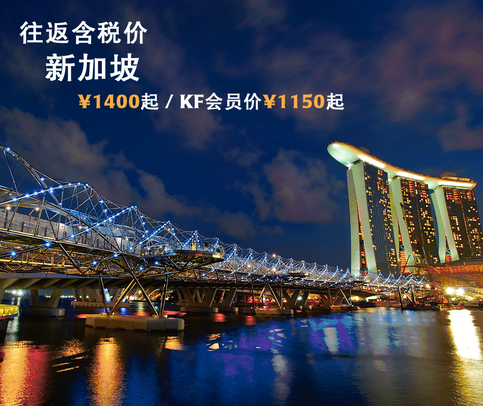 中国多城往返新加坡,KF会员独享价¥1150起;
