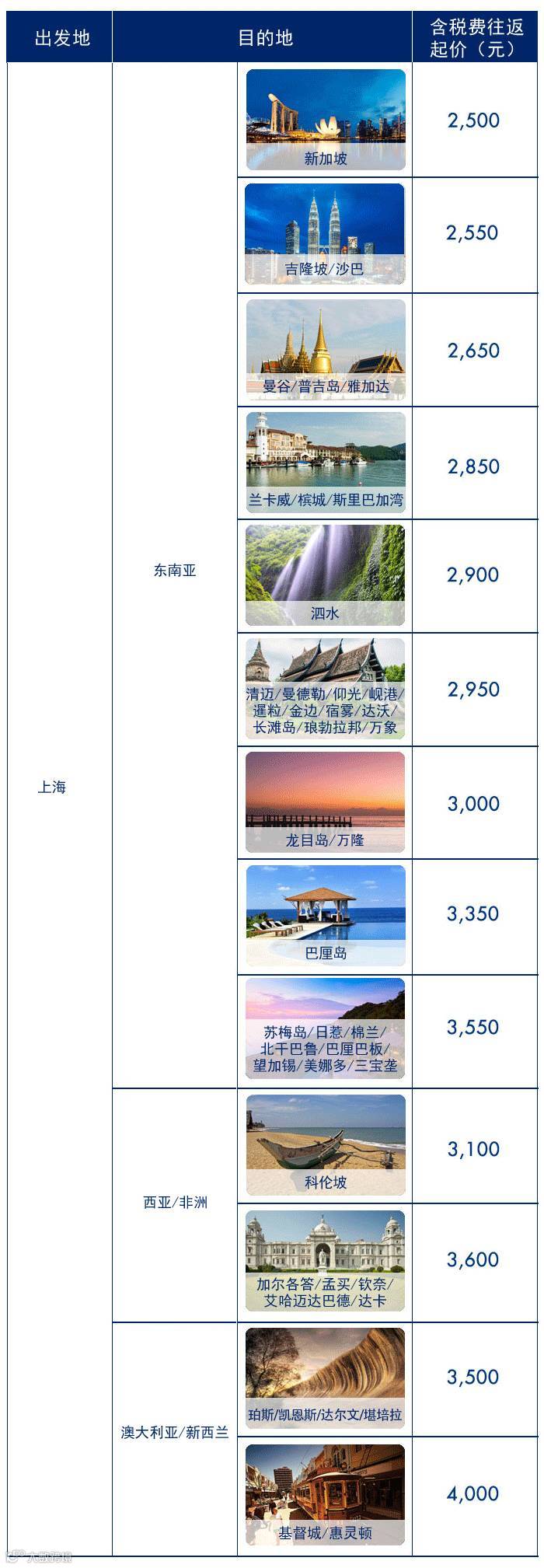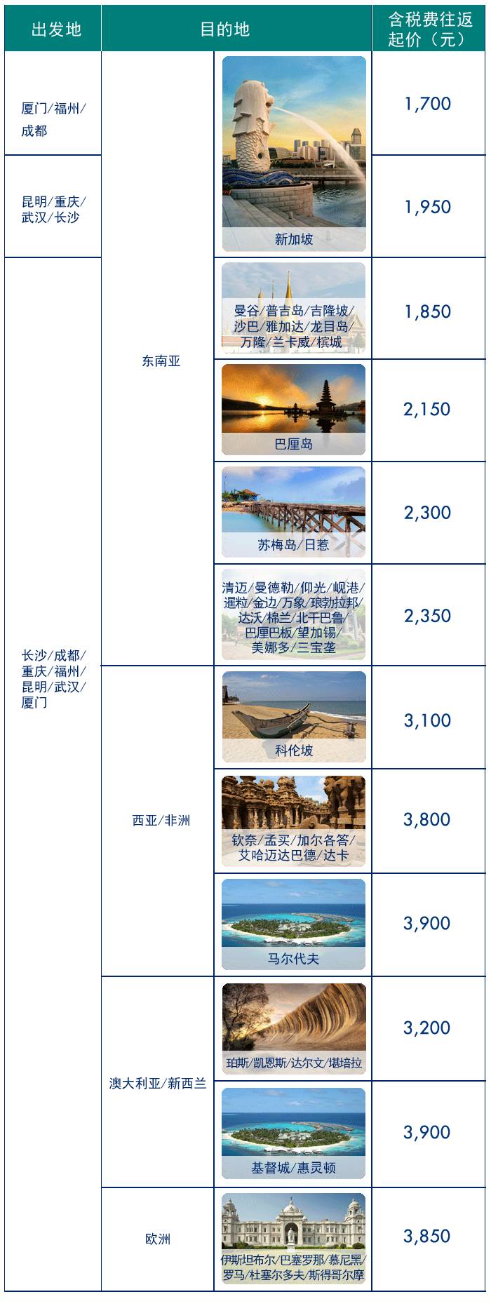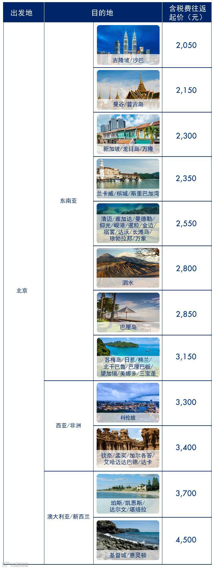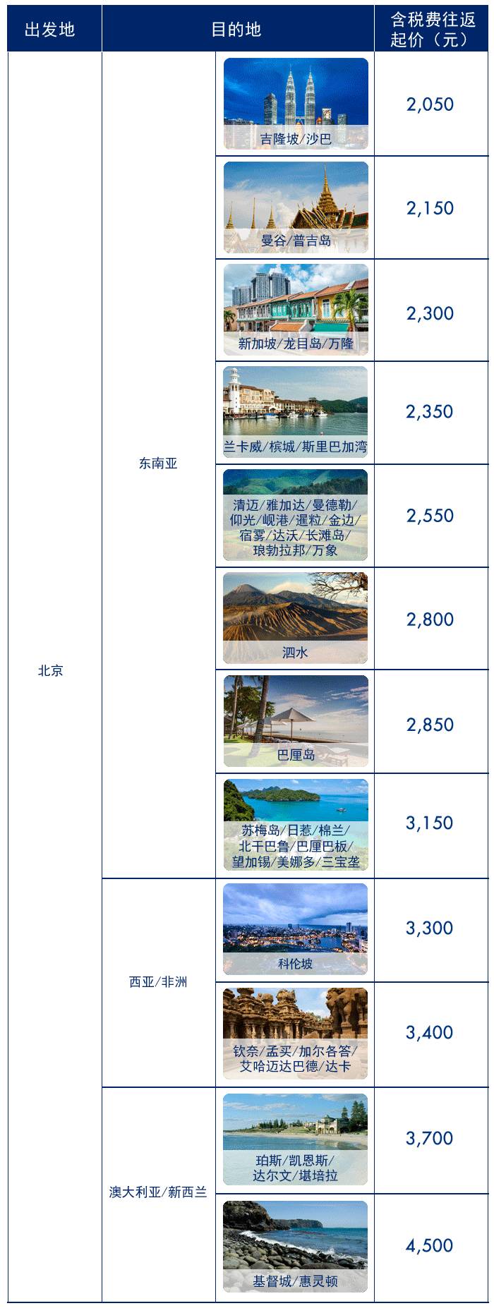 (部分价格仅限指定航班,详情请点击 [阅读原文] 或见新航官网)北京出发