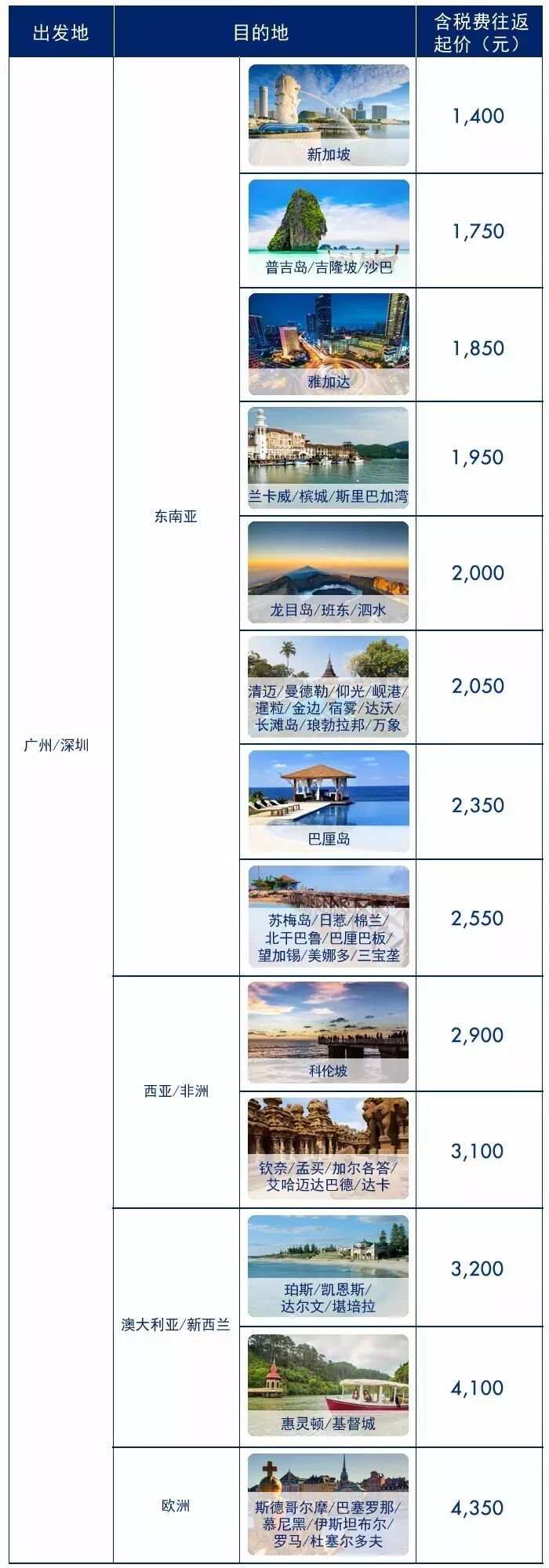 (部分价格仅限指定航班,详情请点击 [阅读原文] 或见新航官网)广州/深圳出发
