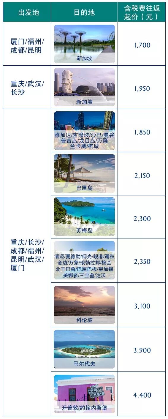 *以上价格为含税往返价格,税金以出票当天为准,价格略有微调。