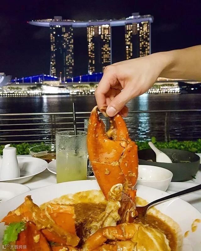 除了螃蟹好吃,这里的风景更是一绝!坐在餐厅户外观景区,河对岸就是金沙酒店,一抬头就能看到鱼尾狮,夜景无敌美,只是一定要提前预订,不然排队要很久(还有可能吃不上)!