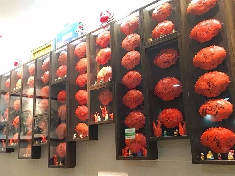 店里还有一道吸睛满分的风景线:一整面螃蟹壳墙,上面全部都是光临过本店的明星签名,除了新加坡本地的明星,很多台湾和香港的明星都很喜欢来吃。在这里邂逅明星的几率很高哦!