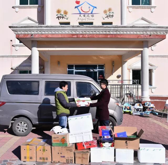 ▲ 京东生鲜工作人员带着年货来到天使之家