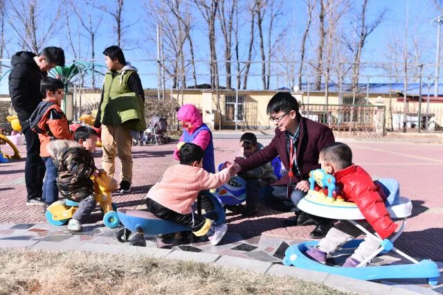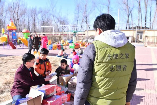 ▲ 天使之家的小朋友们围绕在工作人员身边