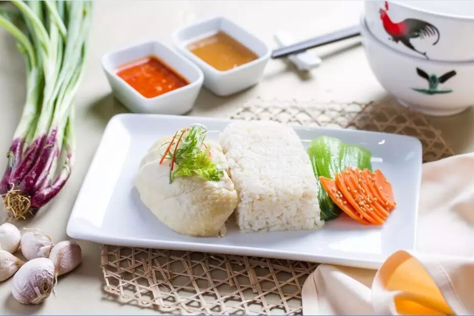 新加坡鸡饭:海南鸡饭搭配台湾泡菜和辣椒酱
