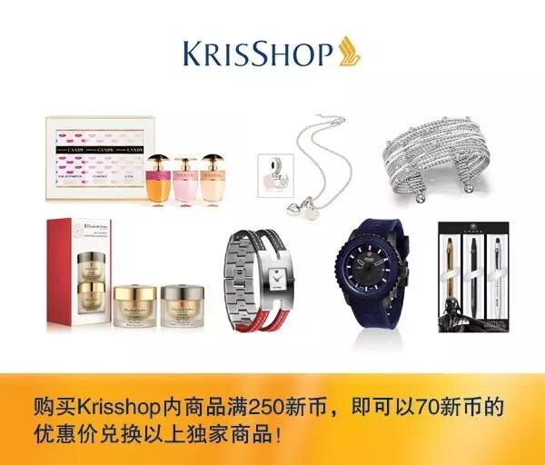 如果你是KrisFlyer会员,在KrisShop线上商城购买满250新币,即可以70新币的优惠价兑换超值商品,包括原价159新币的潘多拉饰品,原价139元的TOMMY HILFIGER女士手表等等。