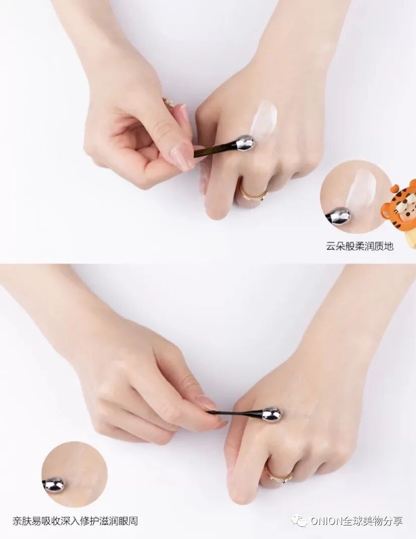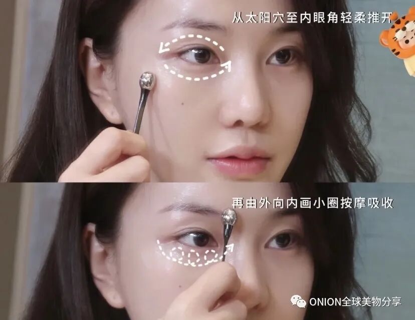 STEP2:打圈下眼眶,滋养眼周肌肤,改善黑眼圈;