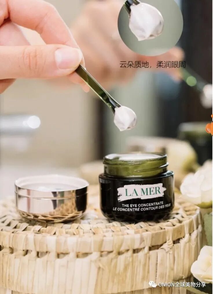 LA MER眼霜的质地,是绵密轻盈的冰激凌质地,云朵般柔润,上眼后薄薄的一层非常好推开很快吸收,不厚重不粘腻。不会引发脂肪粒,上眼使用感很舒服,再搭配他的招牌倒入棒一起使用,在家就可以享受spa级别的眼部按摩~