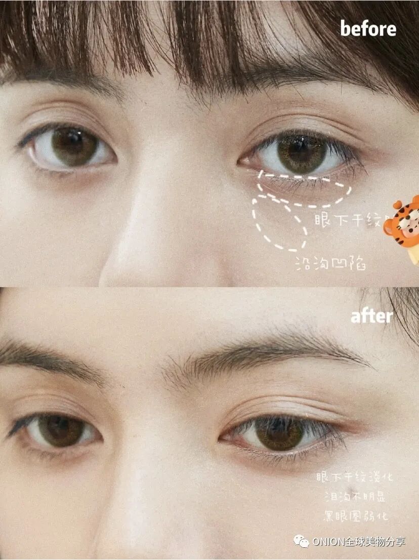 皮肤缺水→干纹,年龄增长→细纹,还有表情纹。。对于经常化妆的美眉,如果眼周肌肤护理地不够好,上妆卡粉很尴尬,还容易有黑眼圈、细纹,非常影响妆感和眼睛活力