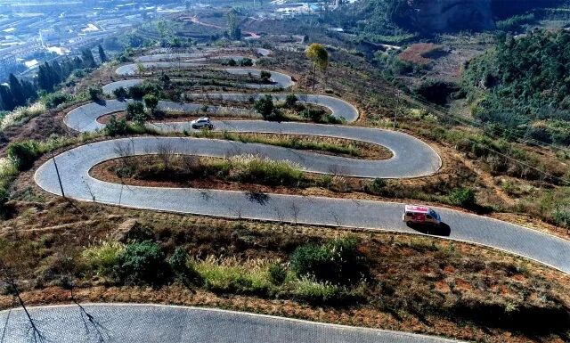 通往宜良靖安哨村的“68道拐”,被一些专家称为世界公路史上的奇迹,当地人说这是“天下第一弯”。这条短短7公里的公路,从海拔1500米到1800米的300米垂直距离上,共有68道拐,最短的不到100米就是一道拐。