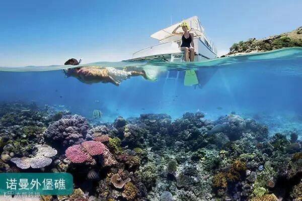 诺曼外堡礁是凯恩斯景色最佳的大堡礁之一,这里的大堡礁群落连绵不断,犹如一片又一片的海底森林,不仅面积广阔,而且层次分明,色彩鲜艳。邻近的珊瑚海底公园孕育着各式的海洋生命。各种热带七彩小鱼畅游其中,与各种大型海鱼及海洋生物形成一条完整的生物链,状如海底大家庭,令人大开眼界,心旷神怡。