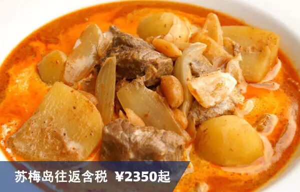 你以为苏梅岛只有碧海蓝天、阳光海滩吗?CNN曾出过一份世界前50位最好吃的美食榜单,排在第一位的就是泰国马沙文咖喱!它是苏梅岛家常咖喱的代表,街头巷尾的餐厅都可以寻觅得到。选料上采用大块牛肉或鸡肉、土豆,咖喱中加入了独有的肉蔻风味,最后再配以椰奶和花生,搭配出这款有深度的咖喱,更多了一份被坚果浓香包裹的醇香。