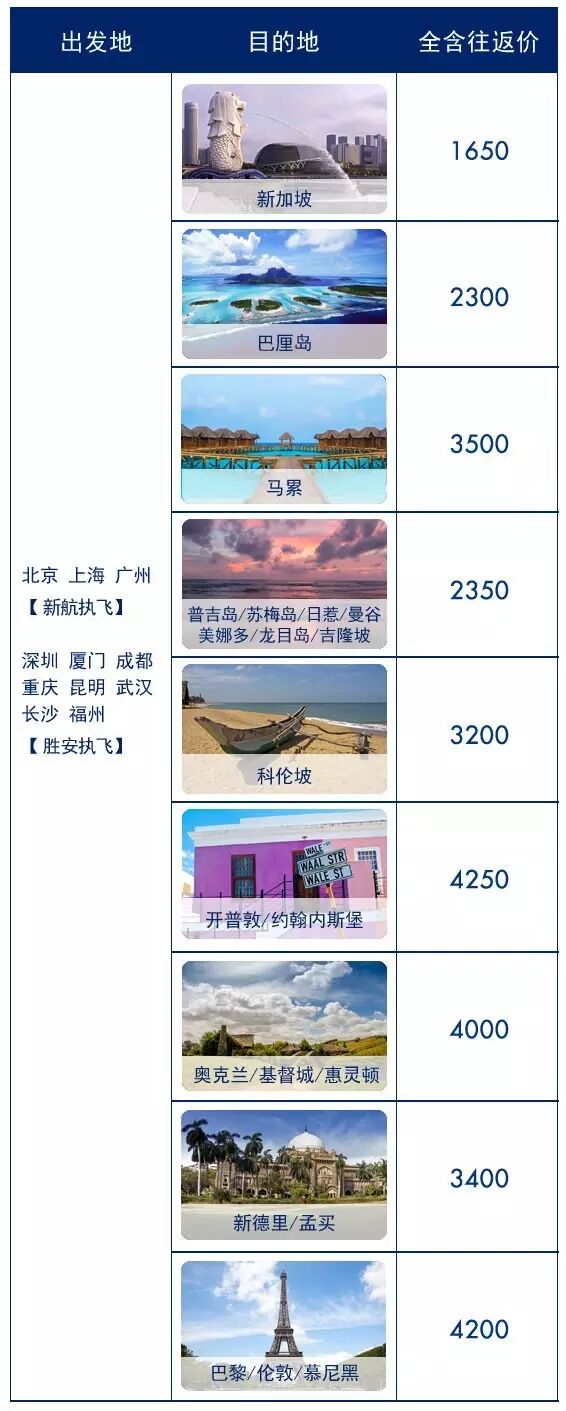 (部分为胜安航空目的地;价格因出发地和目的地而不同,具体价格以新航官网为准)