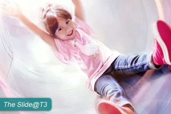 如果你在转机的途中听到一阵惊叫声,那一定是有人在体验时速6米/秒的巨大金属滑梯。滑梯高12公尺,相当于4层楼的高度,最快用4秒就能滑下去,惊险刺激当然尖叫连连!