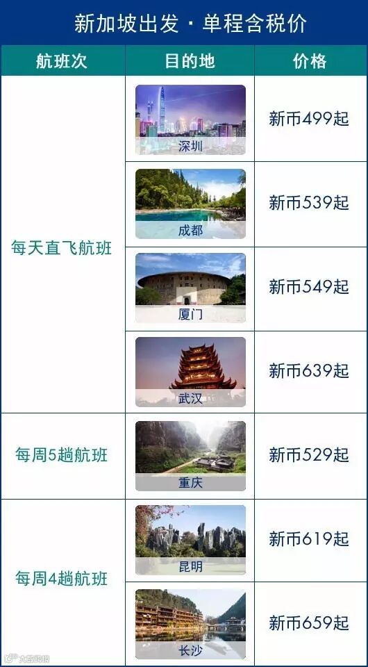 超值机票新币499起!