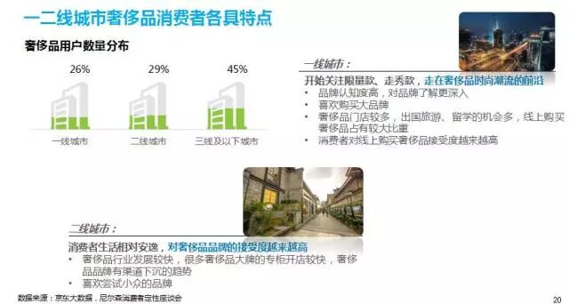 近日,京东数据研究院发布了《2017线上奢侈品消费者洞察报告》(以下简称《报告》),《报告》以京东大数据为基础,以全球著名的市场调研公司尼尔森的研究成果为依托,对奢侈品线上市场的现状和趋势、用户消费特色、地域分布及人群画像等进行了全面解读。