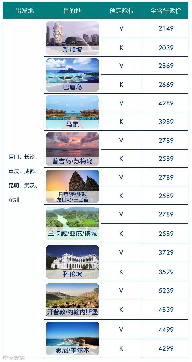 【备注】以上价格为经济舱含税往返价格,税金以出票当天为准,价格略有微调