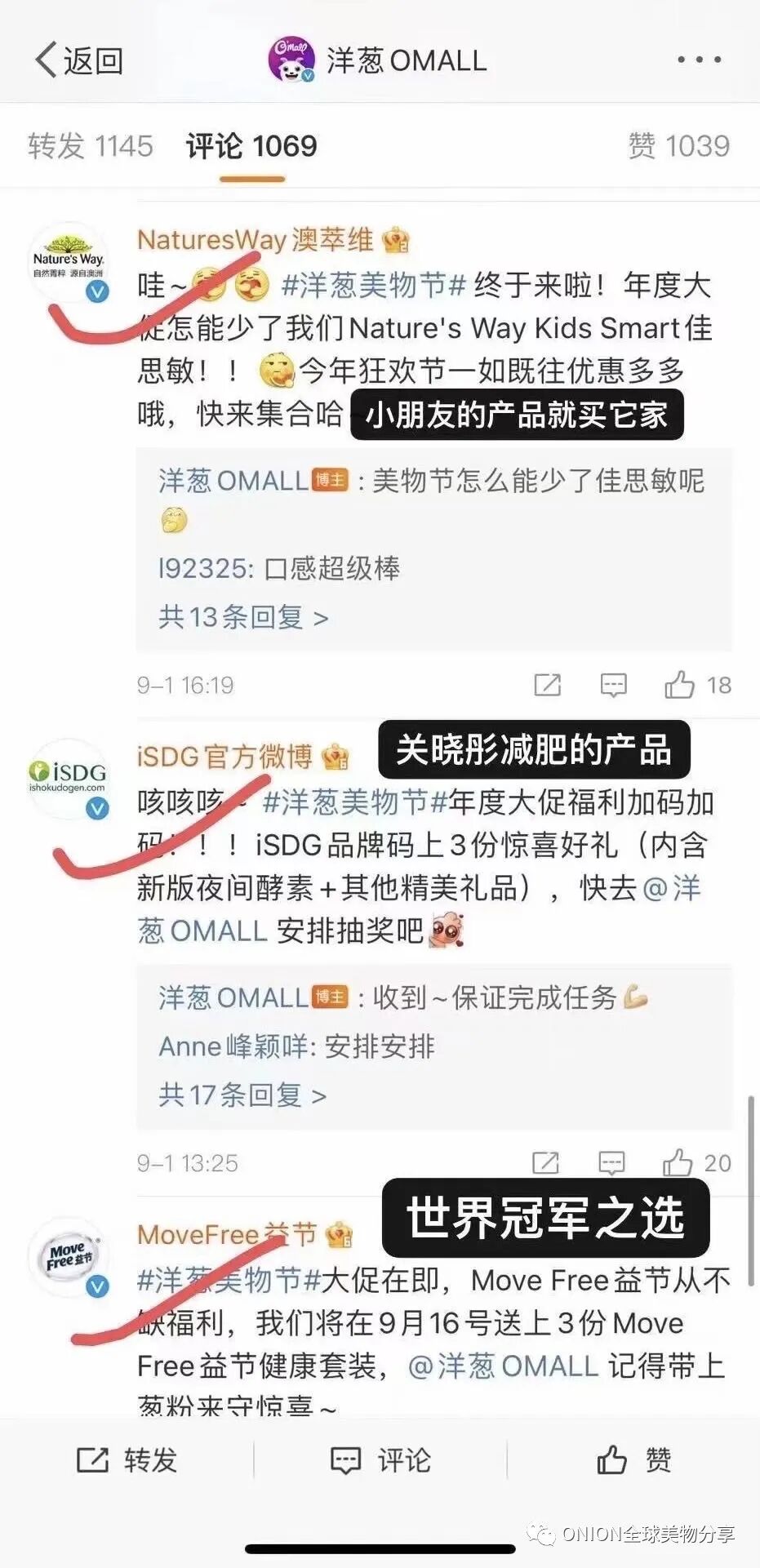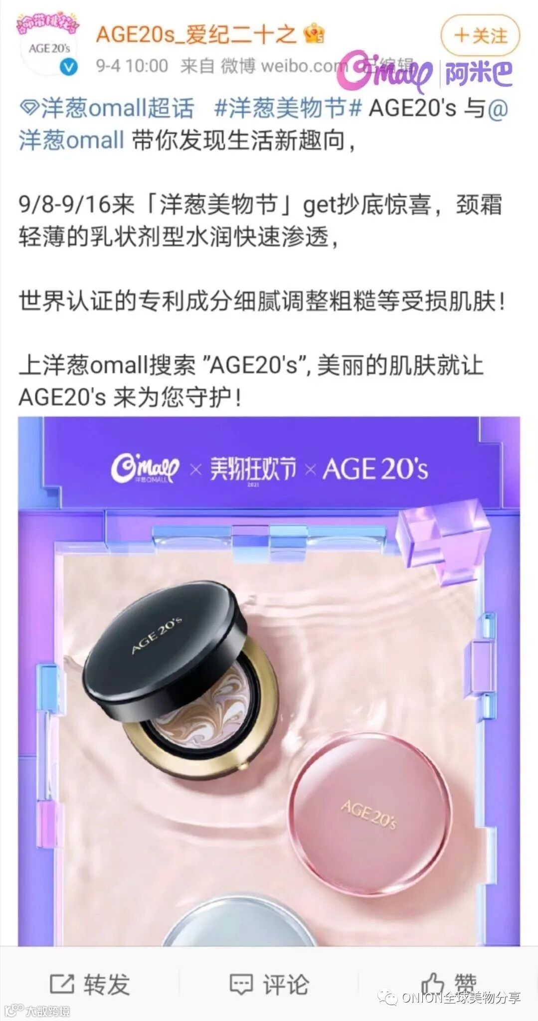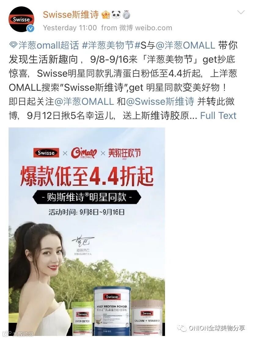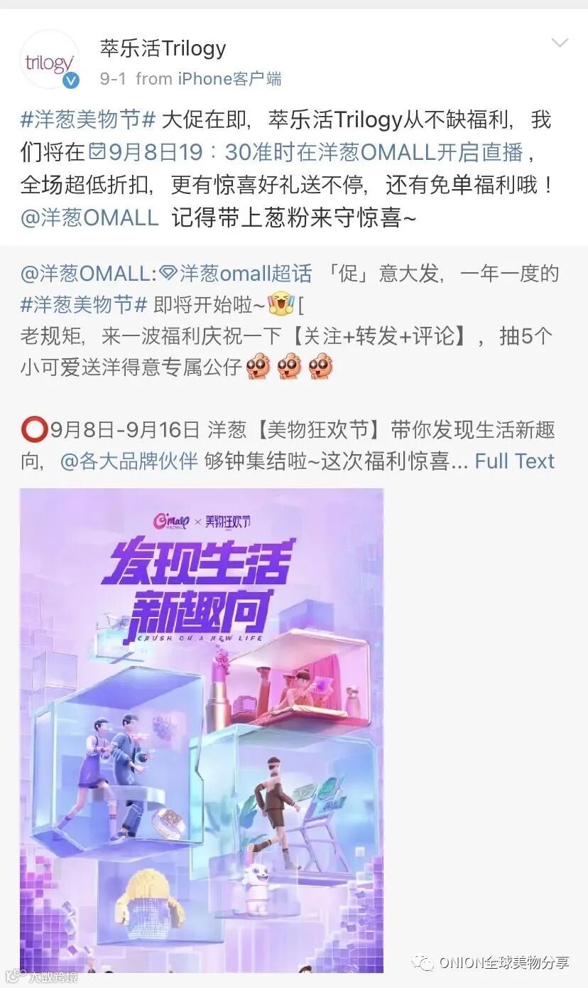 2021洋葱六周年美物节,同样再次获得各品牌方大力支持,众多合作品牌官方微博,为洋葱美物节打CALL并送上福利❤️