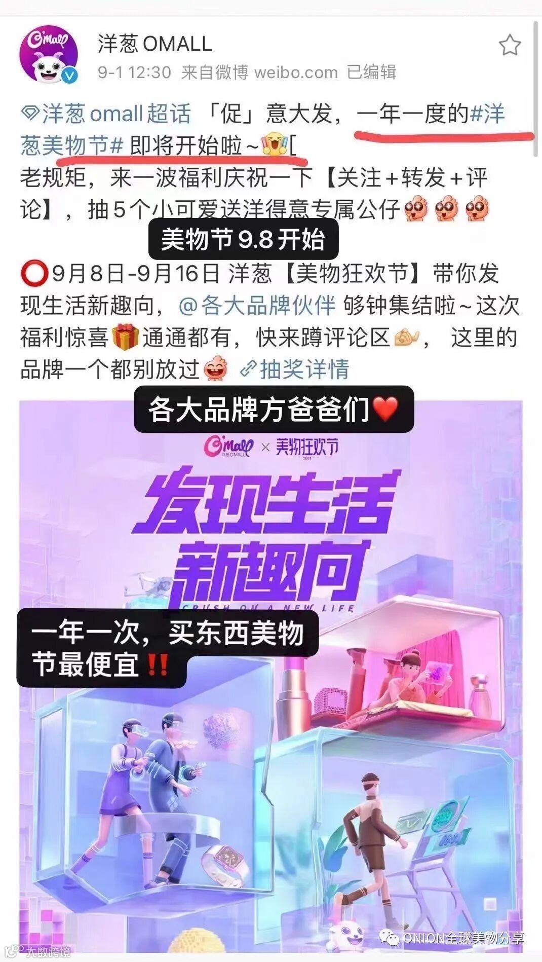 9/8-9/16『洋葱美物节』锁定洋葱O'MALL,get抄底惊喜