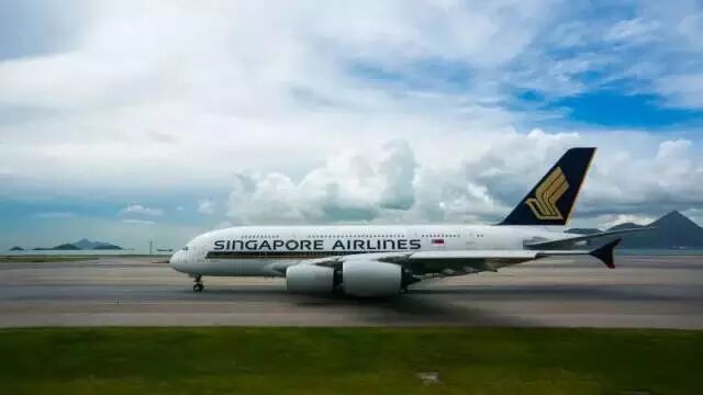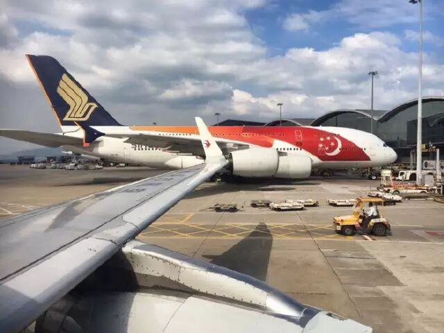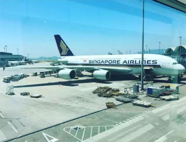 在香港国际机场候机,忽然间闪出一座移动宫殿,一看原来是新航的A380!
