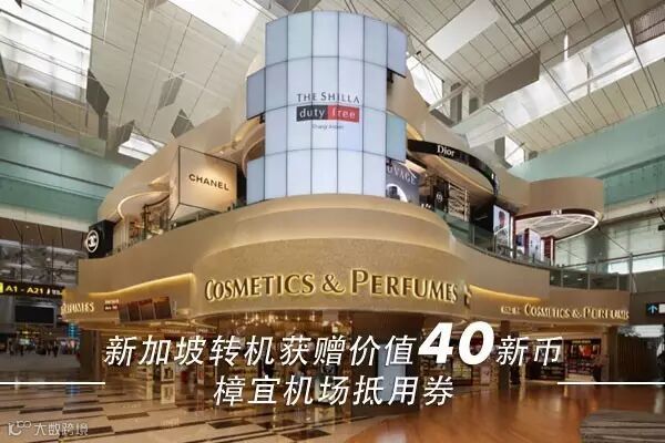 2017年3月31日前,凡中国大陆出发,搭乘新加坡航空或胜安航空在新加坡转机的乘客,将可获得价值40新币的樟宜机场消费抵用券(约合人民币180元)。