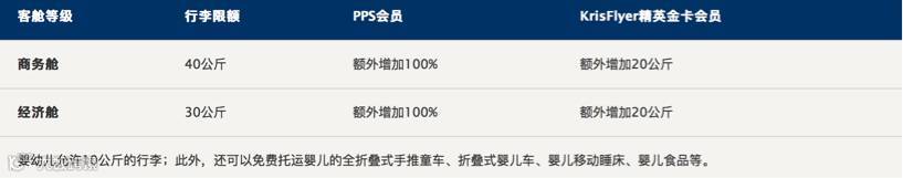 作为新航“礼遇嘉宾俱乐部”(PPS Club)或者“飞行常客奖励计划精英金卡俱乐部”(KrisFlyerElite Gold tier)的会员,您可以享受额外的行李托运限额。