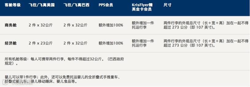 在按照件数计算行李限额的件数制下,从2013年11月15日起,下列往返新加坡和美国航班经济舱乘客的免费托运行李限额,将增加9公斤。