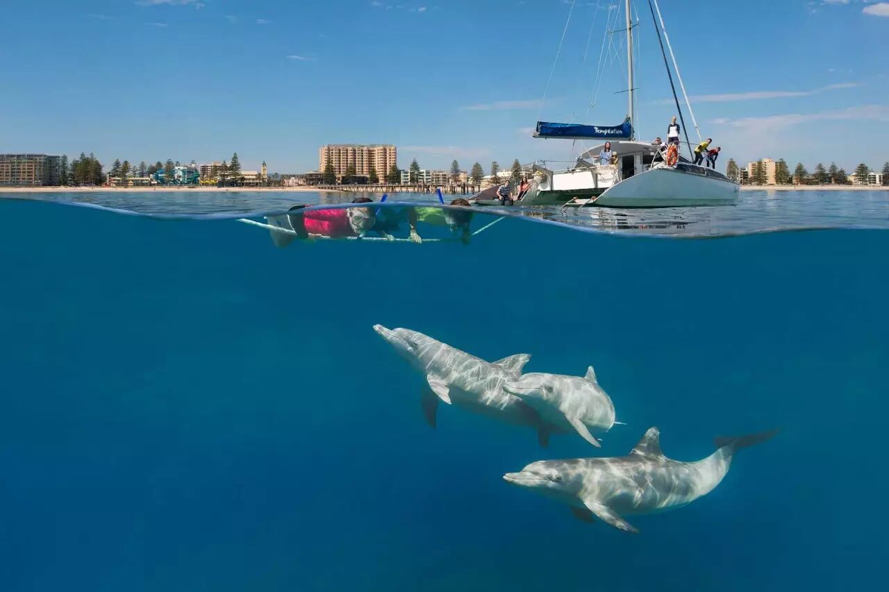 格雷尔海滩(Glenelg)是南澳首府阿德莱德最受欢迎的海滩,也是观看日出和日落美景的绝佳景点。沿着波光粼粼的海岸线,欣赏一片碧海蓝天,时常会有海豚一跃而起向你打招呼,你亦可潜入水中,与海豚亲密接触,一同畅游,互致问候。