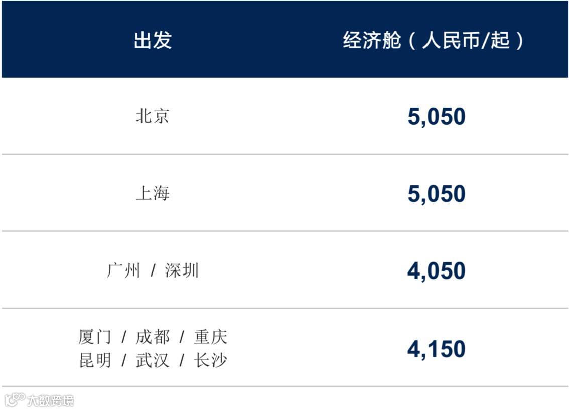 *以上票价均包含税费。北京、上海、广州、悉尼、墨尔本、布里斯班、珀斯和阿德莱德为新航执飞,其余由胜安航空执飞。
