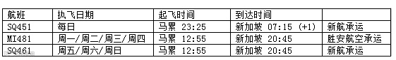 *2015年10月25日至2015年11月20日,SQ452航班时间有所调整:新加坡20:20/马累22:10