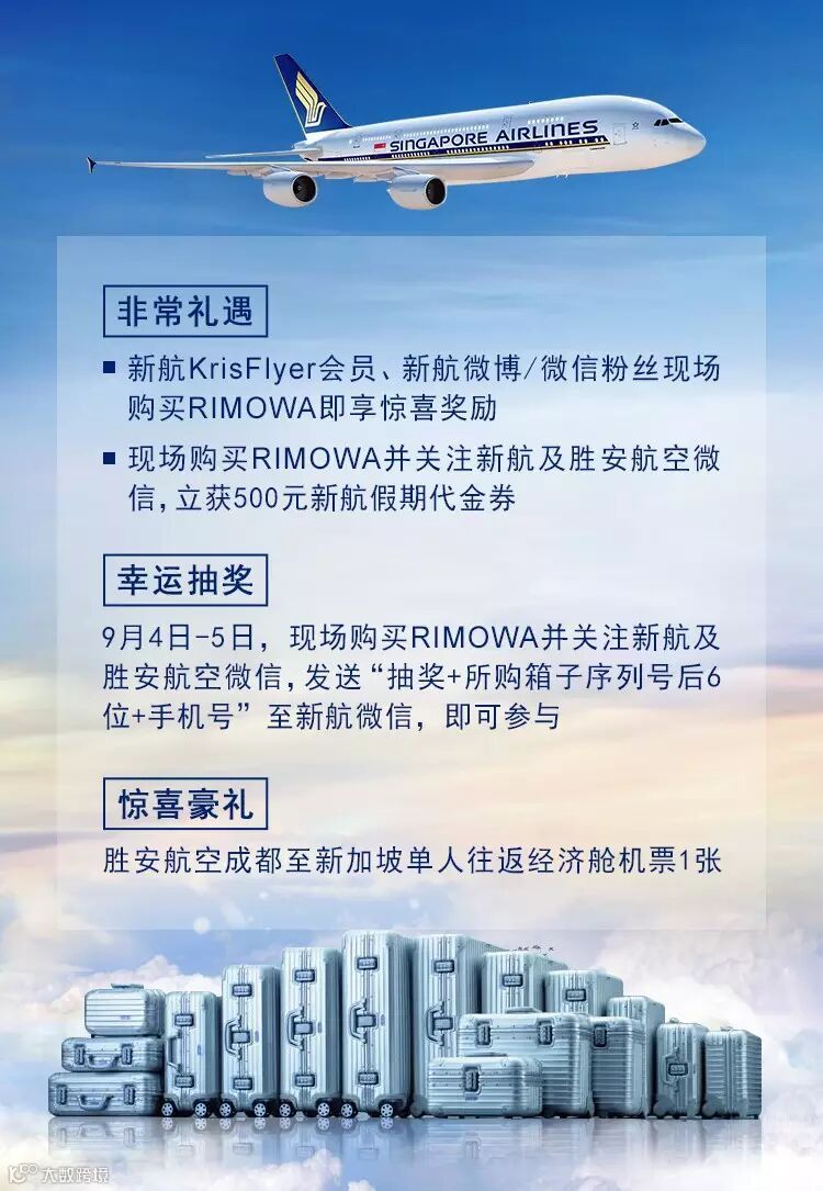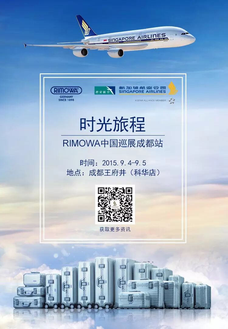 9月4日至5日,新加坡航空携手全球顶级旅行箱品牌RIMOWA“时光旅程”巡展将亮相成都王府井百货!