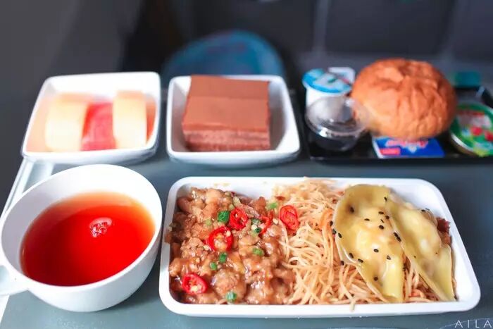 新航的空中美食是由享誉全球的知名主厨组成的“国际烹饪顾问团”精心设计的,来自苏浙汇的朱俊为该顾问团的中国成员。每个人登机后空姐都会给发一份午餐单,上面有多种正餐甜点可以自由选择。丰富的亚洲与国际美食,能够满足乘客的不同口味。尤其是提供中餐的选择,更加符合中国乘客的需求。爱拉点的就是虾饺和面条,搭配一杯浓郁的红茶,满满都是正能量。