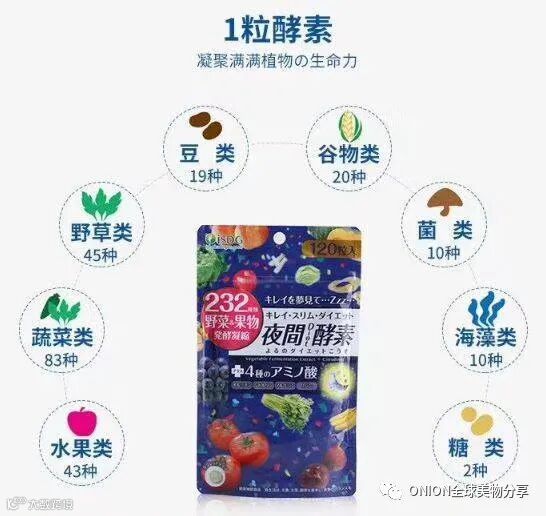 232种原材料,这款夜间酵素选了水果,蔬菜,草木,海藻,谷物等232种原材料,另外搭配四种人体必备氨基酸,夜间促进生长激素的分泌,加快脂肪代谢。