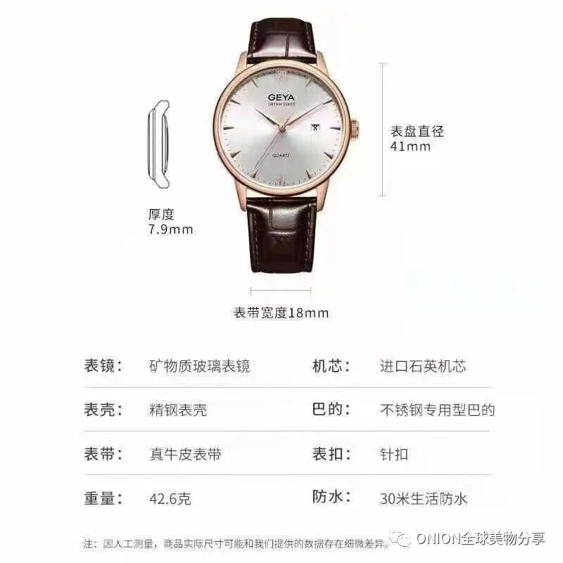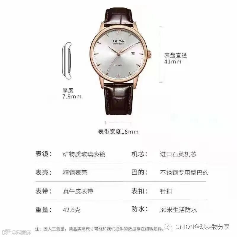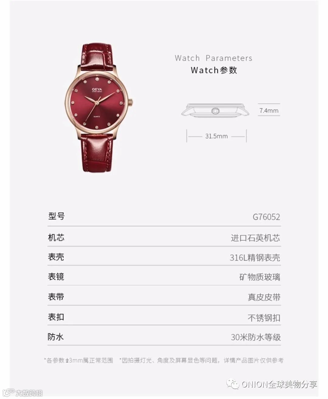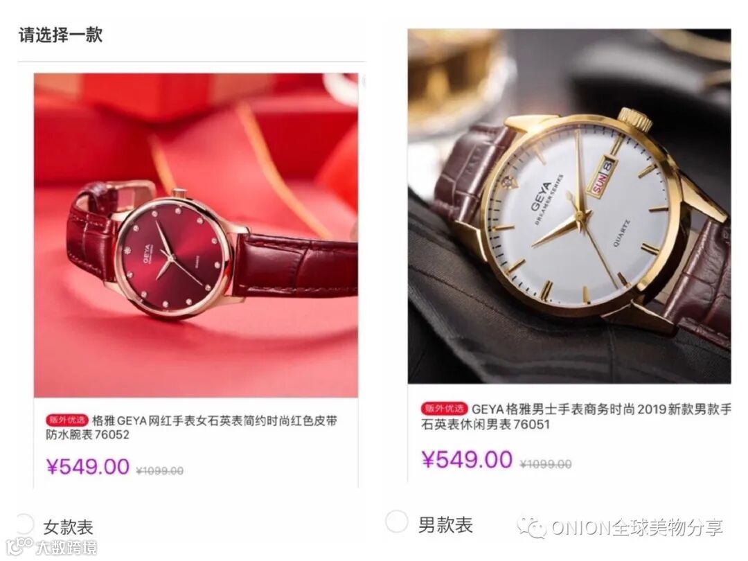 加盟洋葱荣誉会员即送¥549的格雅GEYA男士/女士腕表
