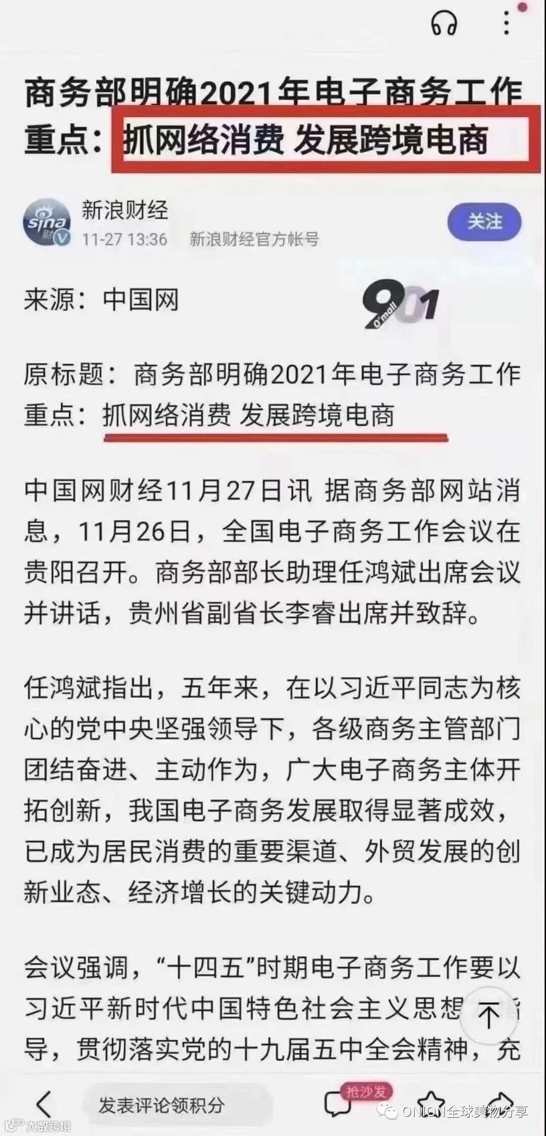 📰中国商务部2021年的工作重点:发展跨境电商!!