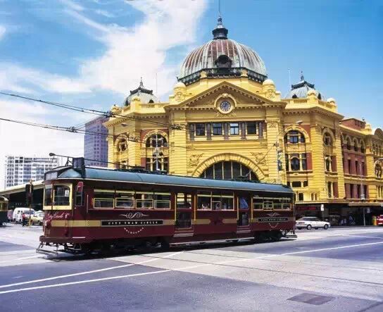 弗林德斯火车站,这座维多利亚风格的古老建筑位于墨尔本的市中心,也是当地人约会碰面的常用地点,如果有人和你说:"Meet you under the clock",就是指在火车站入口处的时钟下见。这些钟指示的不是各国时间,而是每一班火车驶离的时间。这幢米黄色的文艺复兴式建筑物,已经屹立百年,是墨尔本的著名标志。
