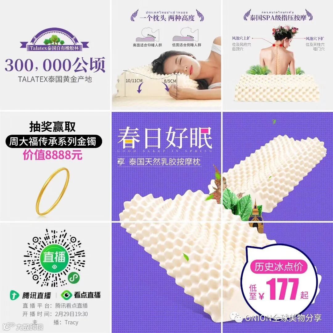 今晚直播间买🈵¥300🇹🇭乳胶枕