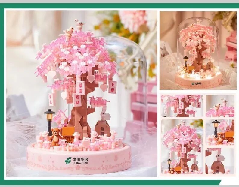 分别获得积木拼装樱花许愿树一件