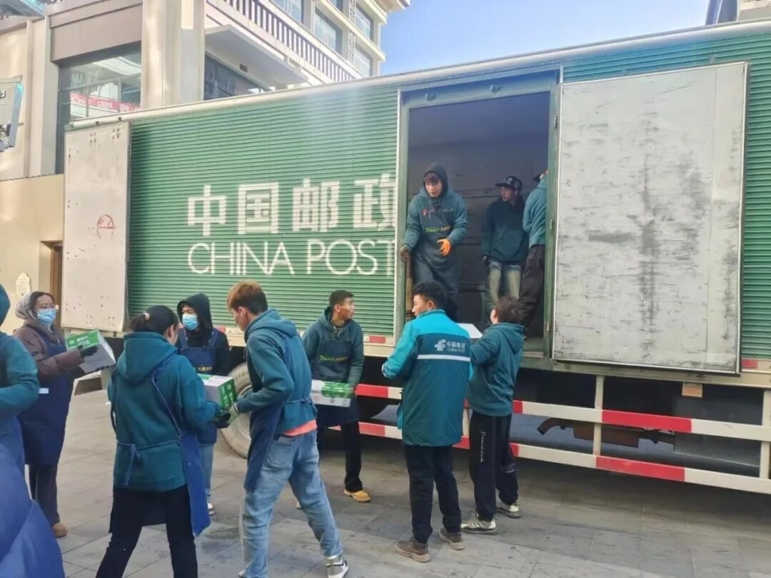 1月8日,西藏邮政受日喀则市妇联委托,调配邮车从日喀则出发,紧急运输全国妇联基金会应急物资至拉孜县人民政府,车上共有应急物资1325件
