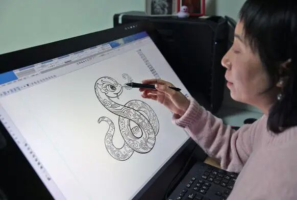 在今年蛇年邮票雕刻中