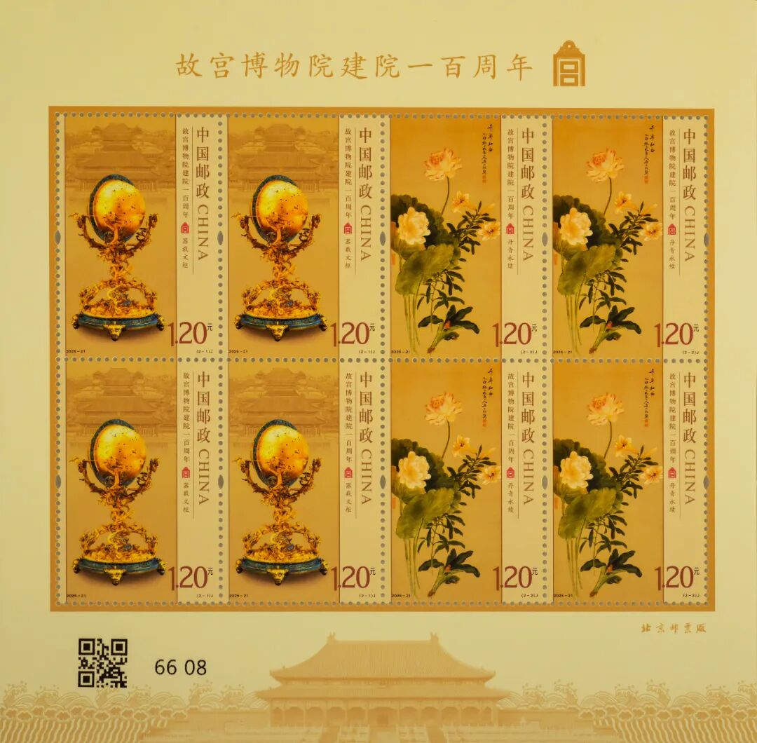 中国邮政定于2025年10月10日发行《故宫博物院建院一百周年》纪念邮票1套2枚,邮票图案名称为:器载文枢、丹青永续。全套邮票面值2.40元,计划发行数量为套票490万套,版式二69.3万版。