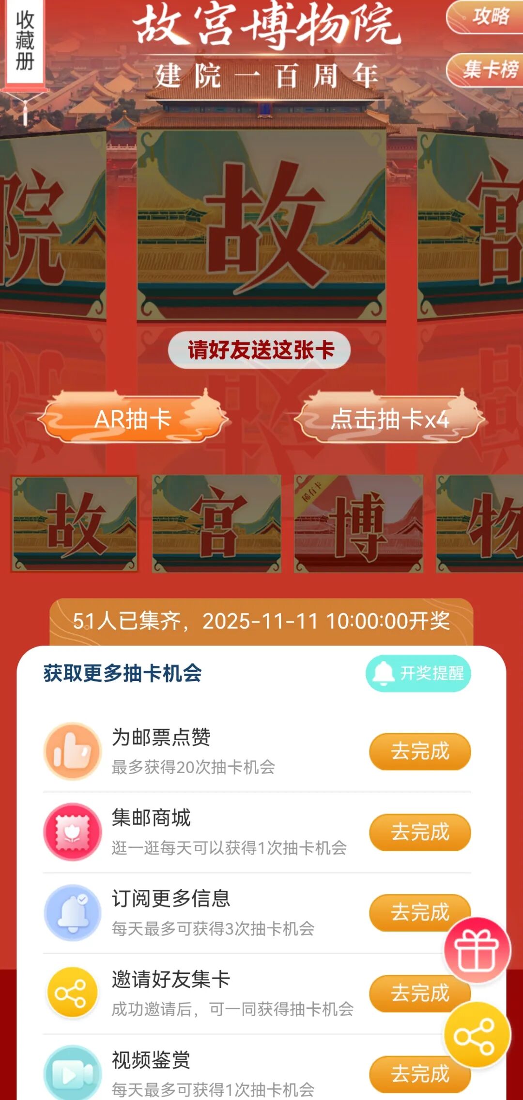 为了更丰富地展现邮票内容,中国邮政还通过“中国集邮邮票百科”微信小程序发布数字化内容,可使用AR功能观看。参与完成“为邮票点赞”“订阅更多消息”“邀请好友集卡”和“视频欣赏”等任务,能获取更多抽卡机会!和小伙伴互换卡片,一起更快集齐赢取奖品吧!