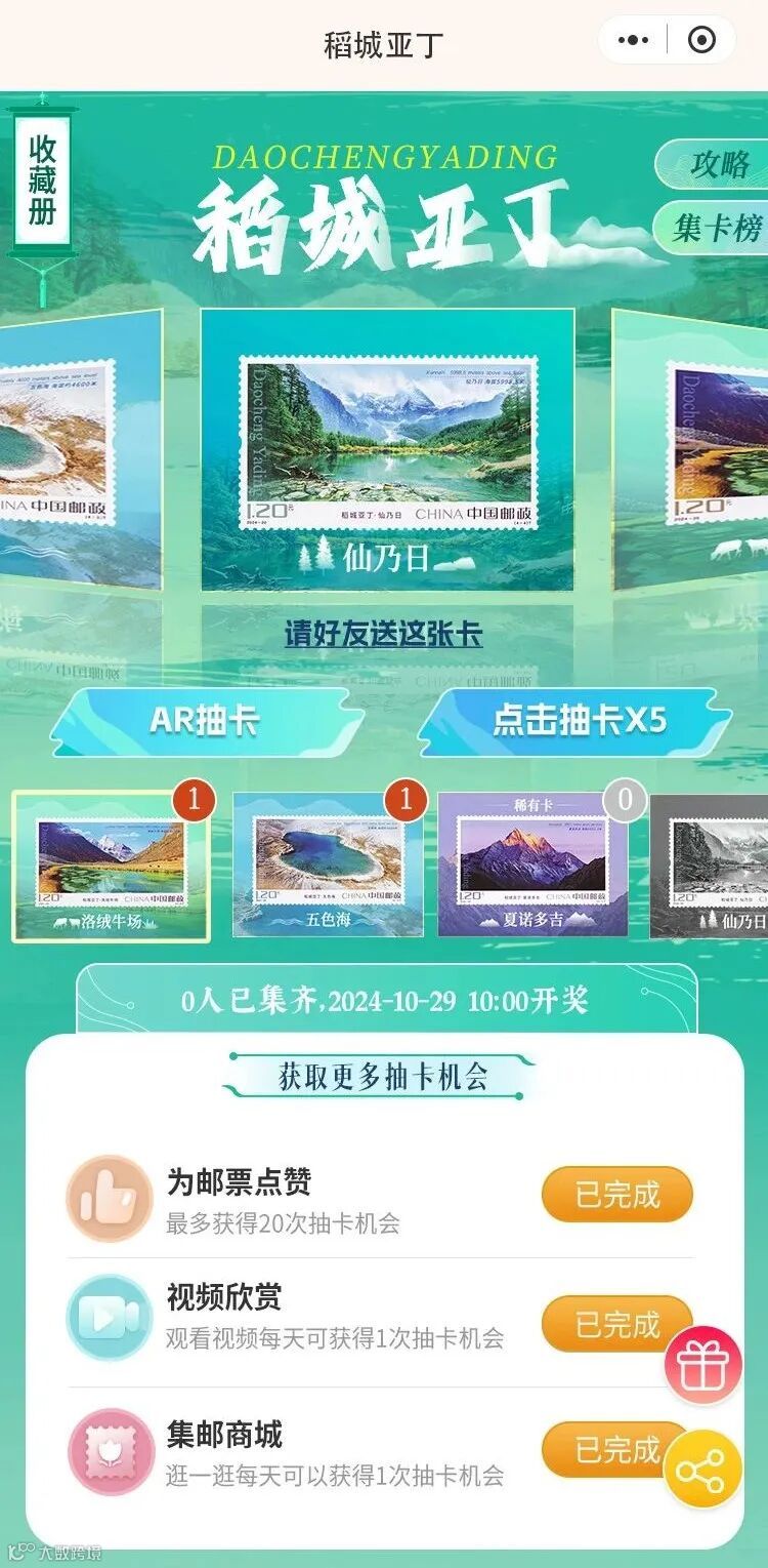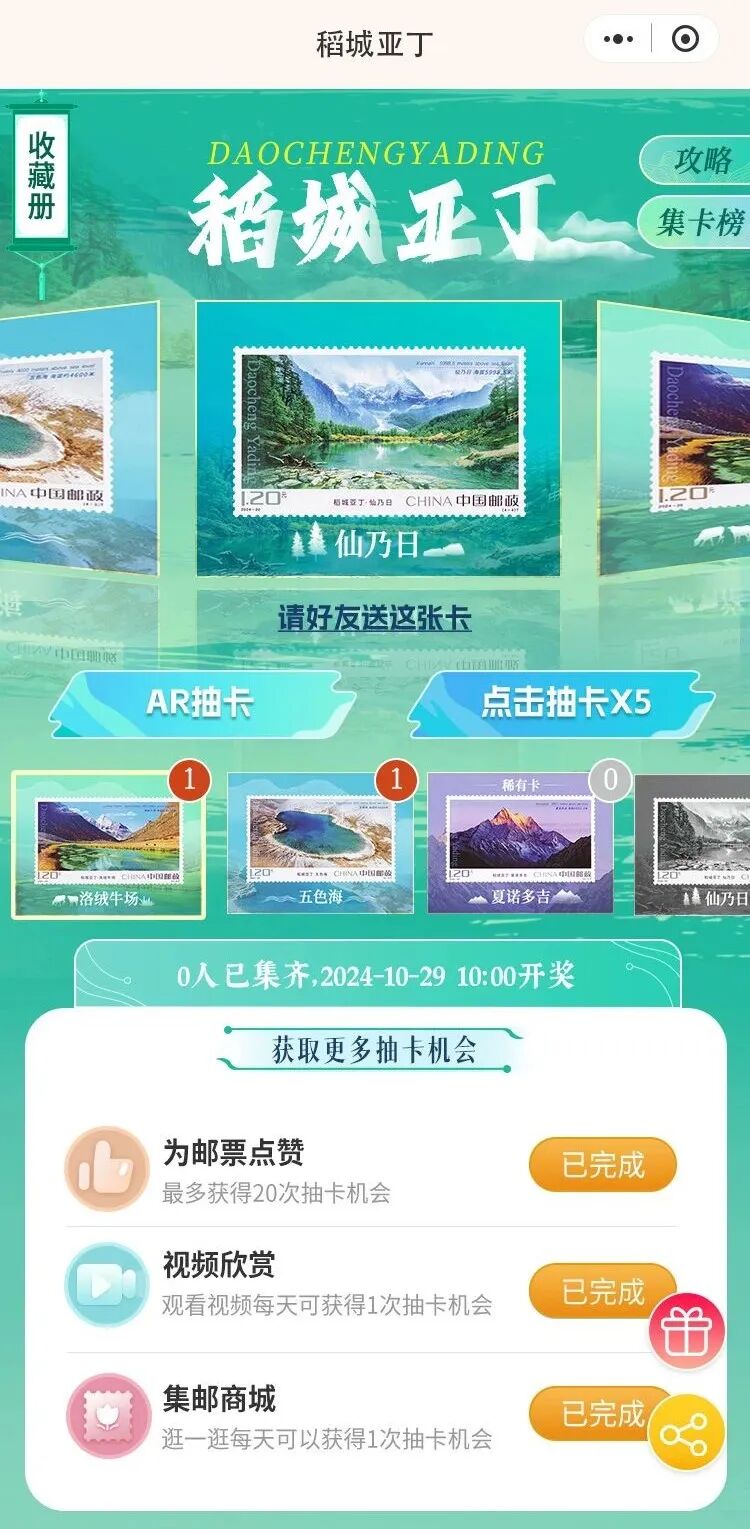 9月28日《稻城亚丁》特种邮票发行,快扫描下方二维码进入中国集邮邮票百科小程序,体验互动活动并赢取奖品吧!