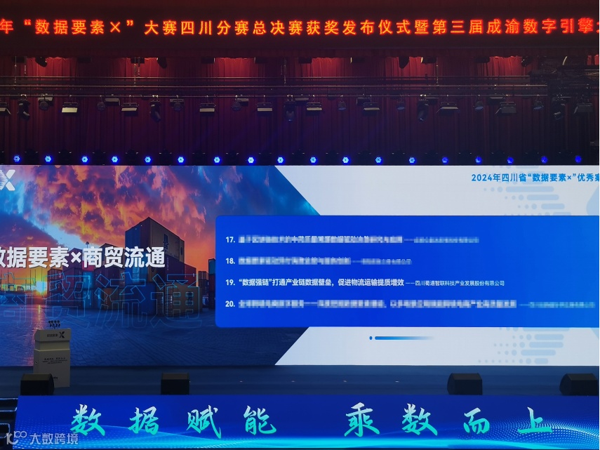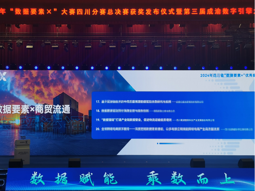 9月24日,以“数据赋能,乘数为上”为主题的2024年“数据要素×”大赛四川分赛总决赛获奖发布仪式暨第三届成渝数字引擎大会顺利举办,活动期间发布了2024年四川省“数据要素×”优秀案例。蜀道智联公司以“蜀好运”数智物流平台为基础,提交的《“数据强链”打通产业链数据壁垒,促进物流运输提质增效》成功入选,并被推报国家数据局参与国家“数据要素×”典型案例评选。